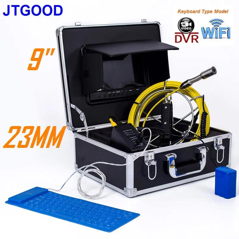 JTGOOD 9" Monitor 23MM 1080P DVR WiFi and Keyboard Pipe Inspection Video Camera,IP68 HD 1000TVL Drain Sewer Pipeline Industrial Endoscope System