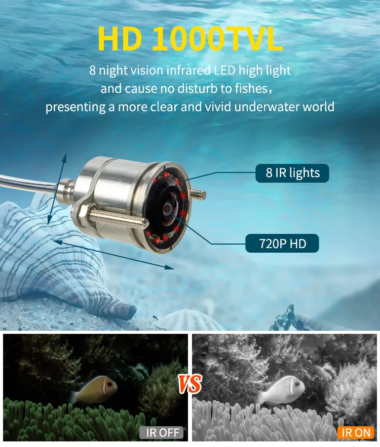 3.The 8pcs infrared lamp with night vision function lighten the dark underwater environment.