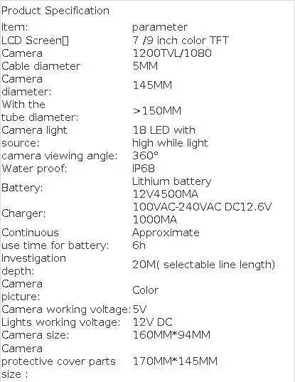 Professional Drain Pipe/Sewer Pipeline Inspection Camera is designed with a 7 inches color TFT LCD